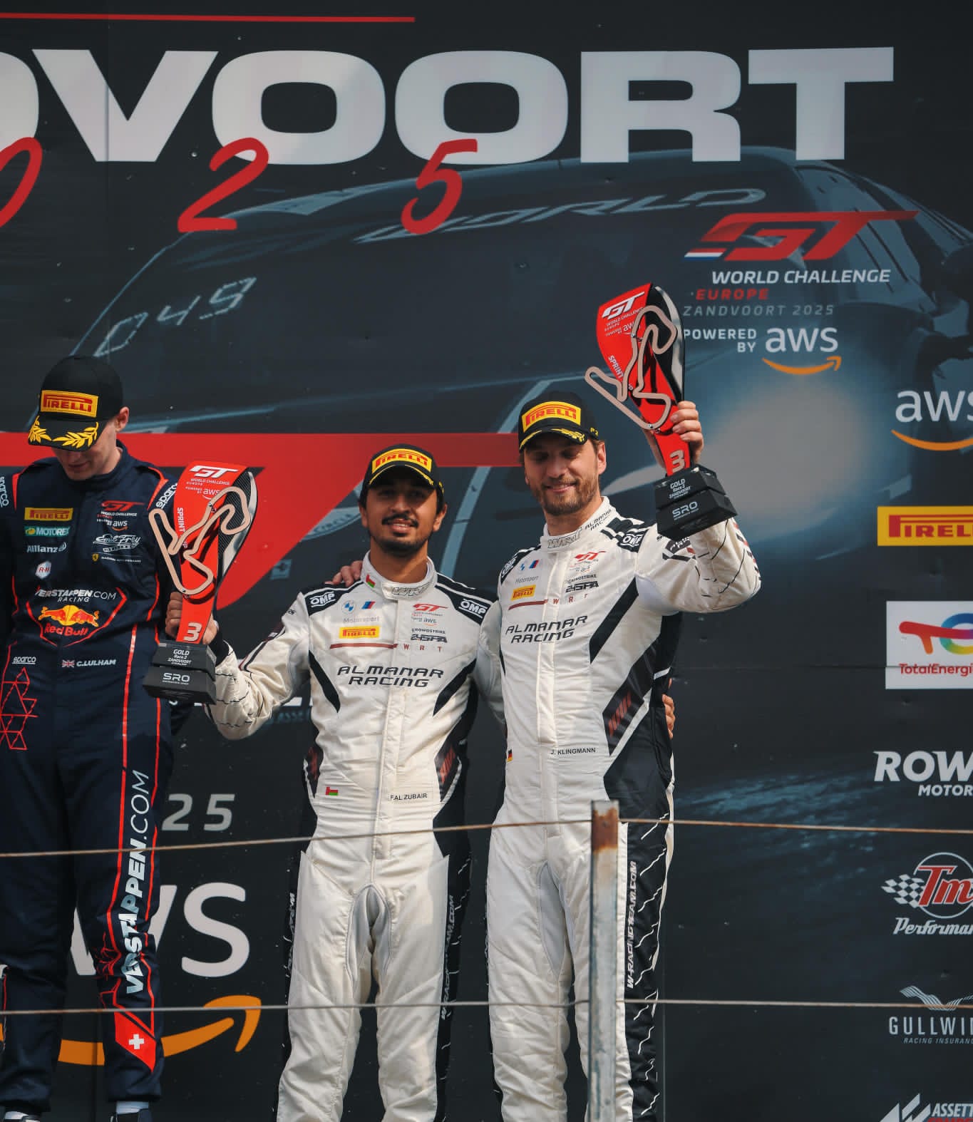 صعد المتسابق الدولي الفيصل بن خالد الزبير مجددًا على منصات تتويج السباقات العالمية بعد تحقيق المركز الثالث في الجولة الثانية من سباقات السرعة (السبرينت) ضمن بطولة تحدي جي تي العالمية 2025 وعلى حلبة زاندفورت الهولندية وهي ثالث محطاته للموسم الحالي حيث حل الفيصل في المركز الثالث في السباق الأول وفي نفس المركز في السباق الثاني في فئة الكاس الذهبية مع زميله في سائق المنار للسباقات ينز كلينغمان على متن سيارة بي أم دبليو “أم 4 جي تي 3 إيفو” وبالتعاون الفني مع فريق (دبليو أر تي) ليحصد الفريق مزيدًا من النقاط والتي تساهم في المنافسة على الترتيب العام مع نهاية البطولة وشهدت هذه الجولة مشاركة اكثر من 40 سيارة من مختلف المصانع حملت معها الكثير من الإثارة والتحدي.