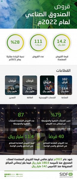 الصندوق الصناعي” يعتمد قروضاً بقيمة تفوق 14 مليار ريال خلال عام 2022