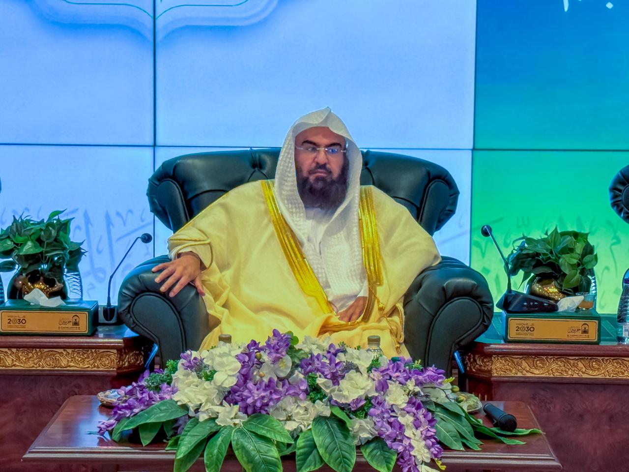 وقد ألقى معالي الشيخ أ.د عبدالرحمن بن عبدالعزيز السديس كلمة ضافية بهذه المناسبة أشاد فيها بما تحقق من منجزات مزهرة ومخرجات مثمرة، ومشددا على أهمية الاستمرار في تطوير منظومة العمل الديني بمختلف شؤونه وفي شتى مجالاته بما يعكس رسالة الحرمين الشريفين للعالم القائمة على تعزيز القيم الإسلامية باعتدال ووسطية، وبما يثري تجربة الزائر بأعلى درجات المهنية، وأرقى الخدمات التقنية في بيئة تعبدية تتوائم مع تطلعات القيادة الرشيدة وتحقق مستهدفات الرؤية السديدة في منظومة عمل مؤسسي محوكم.