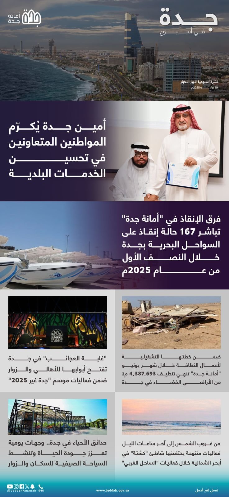 امانة جدة تكرم المواطنين المتعاونين وتواصل جهودها في تحسين المشهد الحضري والخدمات البلدية