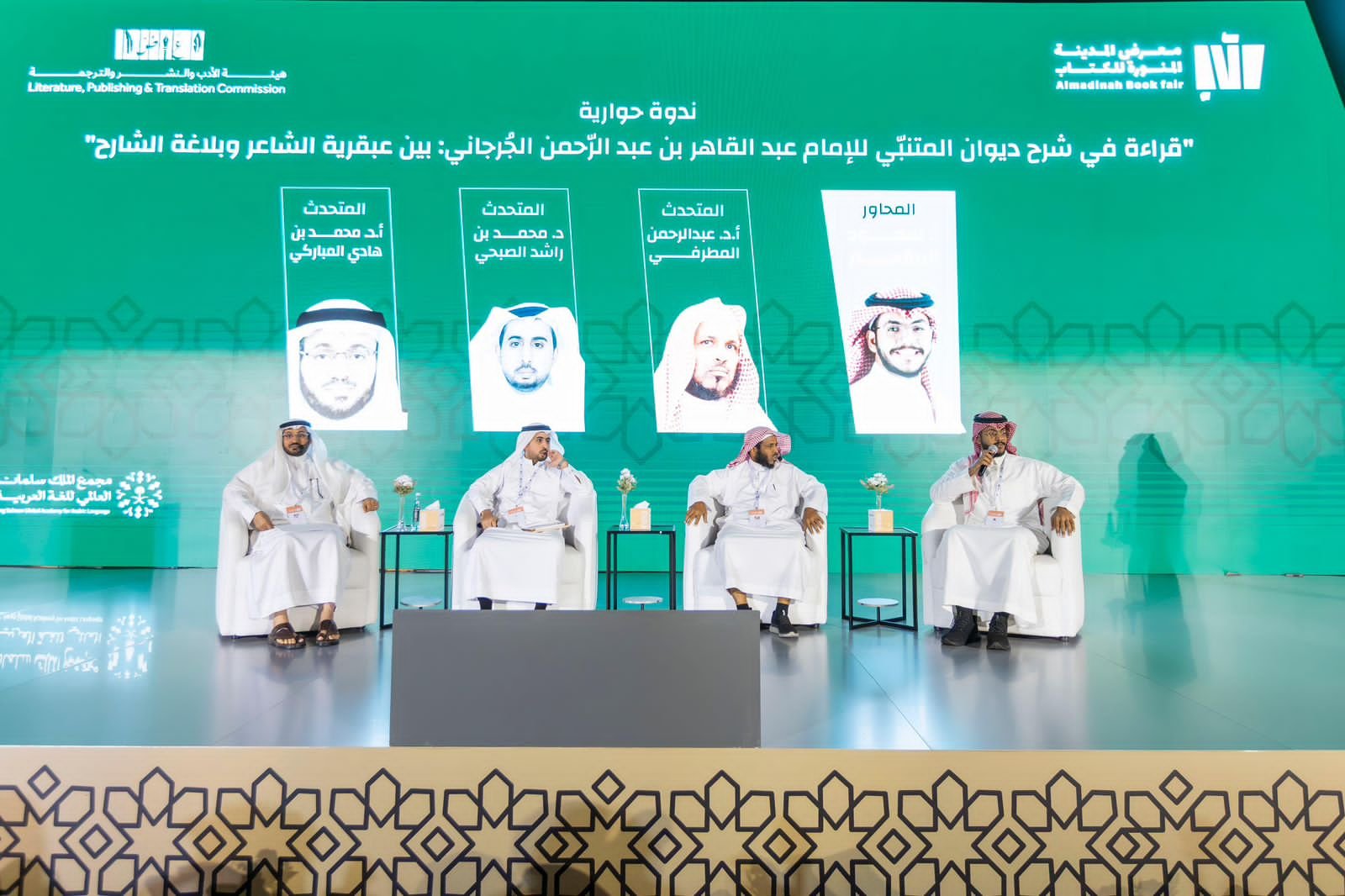 استضاف معرضُ المدينة المنوّرة للكتاب 2025، في واحدةٍ من أبرز فعاليَّاته الأدبيّة، ندوةً نقديَّةً بعنوان “قراءةٌ في شرح المتنبِّي للإمام عبدالقاهر الجُرجانيّ: بين عبقريَّةِ الشَّاعر وبلاغة الشَّارح”، أَعدّ لها مجمعُ الملك سلمان العالميّ للغة العربيَّة، وأدارَها الأستاذُ سعود المقحم، بحضور نُخبةٍ من الأكاديميّين والباحثين المتخصِّصين في الأدب العربيِّ.