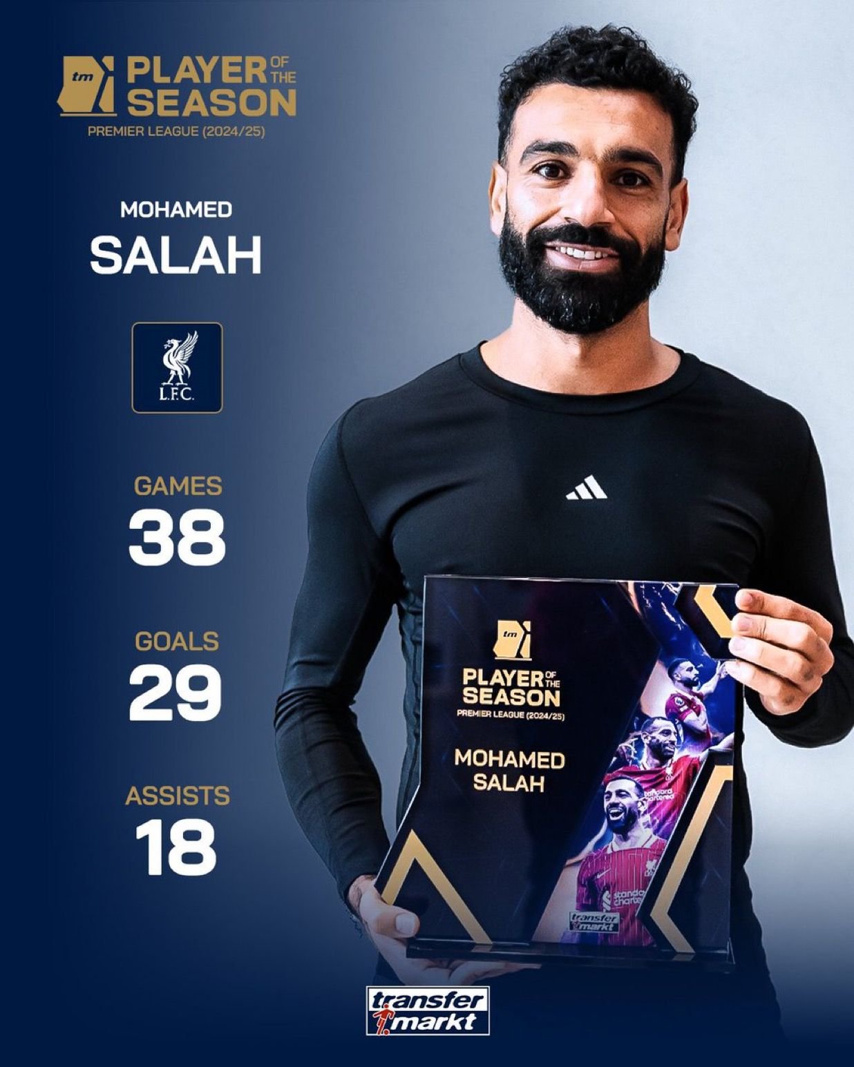 وتفوق محمد صلاح على جميع المنافسين بفارق كبير من الأصوات ليتوج مجهوده بجائزة أفضل لاعب في الدوري الإنجليزي المقدمة من ترانسفير ماركت.