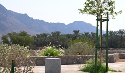 كما تضمنت أعمال التطوير زراعة النخيل والمسطحات الخضراء وتزيين الموقع بـالإنارة الأرضية مع تصميم الكراسي وحاويات النفايات والأحواض الزراعية من الأحجار الطبيعية بما ينسجم مع طابع المكان