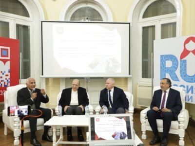 وأشار شريف جاد إلى أن كثيرًا من المواطنين الروس ينحدرون من عائلات شارك آباؤها وأجدادها في الحرب العالمية الثانية، موضحًا أن السفير الروسي الحالي لدى القاهرة، جورجي بوريسينكو، كان جده أحد هؤلاء المحاربين القدامى، وتحدث اللواء/ أحمد أنيس، مدير معهد المخابرات الحربية الأسبق، وأشاد بالدور التاريخي للاتحاد السوفيتي في العديد من المواقف الدولية، مؤكدًا أن مصر خاضت حرب أكتوبر 1973 بالسلاح الروسي وحققت انتصارها، في إطار شراكة امتدت لاحقًا إلى محاور تنموية واقتصادية متعددة، وإقامة مشروعات استراتيجية مشتركة .