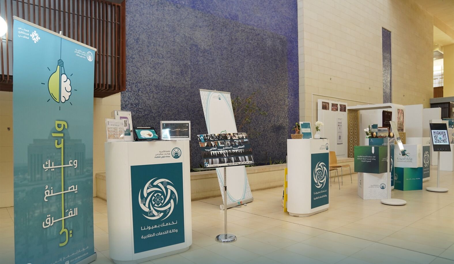 وجاء المعرض في نُسخته الثالثة؛ بهدف تعريف الطالبات بالخدمات الطلابية المقدَّمة وآليات الاستفادة منها، وتعزيز التواصل المباشر بين الطالبات والجهات المعنية، إضافةً إلى رفع مستوى رضا الطالبات من خلال تسهيل الوصول إلى الخدمات، بما يُسهم في تحسين تجربة الطالبة الجامعية، وتحقيق بيئة تعليمية داعمة لصحة مجتمع الجامعة. وتضمَّن المعرض أركانًا تفاعلية، وأنشطة ثقافية، واستشارات فورية، ورسائل توعوية إلكترونية، وعددًا من الخدمات الطلابية، من أبرزها: خدمات الدعم النفسي والاجتماعي، والخدمات الصحية والمالية، وخدمات التغذية، والخدمات المساندة للطالبات ذوات الإعاقة، إلى جانب الفعاليات والأنشطة الطلابية.