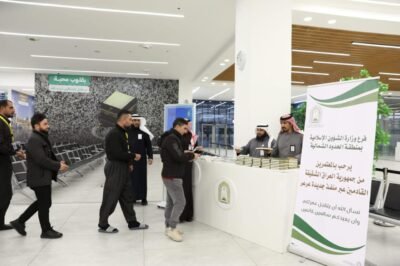 استقبلت وزارة الشؤون الإسلامية والدعوة والإرشاد، ممثلةً بفرعها في منطقة الحدود الشمالية، معتمري جمهورية العراق الشقيقة القادمين عبر منفذ جديدة عرعر، حيث قُدمت لهم منظومة من الخدمات التوعوية والإرشادية خلال فترتين؛ الأولى من 13 إلى 24 شعبان، والثانية من 6 إلى 9 رمضان لعام 1447هـ، بهدف تعريف ضيوف الرحمن بأحكام العمرة وتيسير رحلتهم الإيمانية.