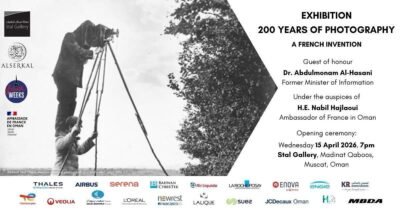 تنظم السفارة الفرنسية في مسقط يوم الأربعاء ١٥ أبريل ٢٠٢٦م عند الساعة ٧ مساءً حفل افتتاح معرض٢٠٠ عام من التصوير الفوتوغرافي بصالة ستال مدينة السلطان قابوس،