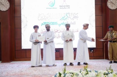 نظم مجلس أولياء الأمور بالولاية حفلًا لتكريم الطلبة المتفوقين والمتفوقات،تحت رعاية نايف بن حمود المعمري نائب والي إبراء، تأكيدًا على أهمية ترسيخ ثقافة التميز العلمي وتحفيز الطلبة على مواصلة التفوق والإبداع.