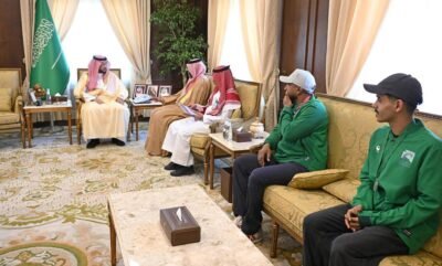 جاء ذلك خلال لقاء سموه الرئيس التنفيذي للاتحاد السعودي للطيران الشراعي بالمملكة، ماجد بن عون الأحمري، يرافقه عدد من منسوبي ولاعبي المنتخب السعودي للطيران الشراعي، الذين حققوا مراكز متقدمة وميداليات متنوعة في البطولات العالمية والمحلية.