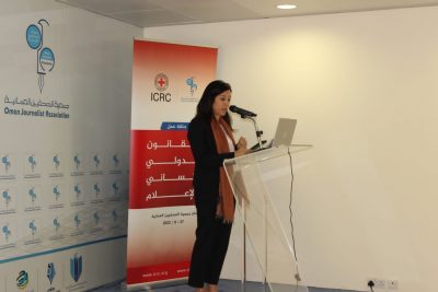 ووتواصل غدًا الاربعاء اعمال حلقة العمل حول القانون الدولي الانساني والاعلام بمقر جمعية الصحفيين العمانية بتقديم عدد من المحاضرات حول الاعلام الانساني مبادئه وممارساته والمواد التي تقدمها اللجنة الدولية للاعلاميين اضافة الى التغطية الصحفية للنزاعات المسلحة وحالات العنف الاخرى.