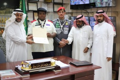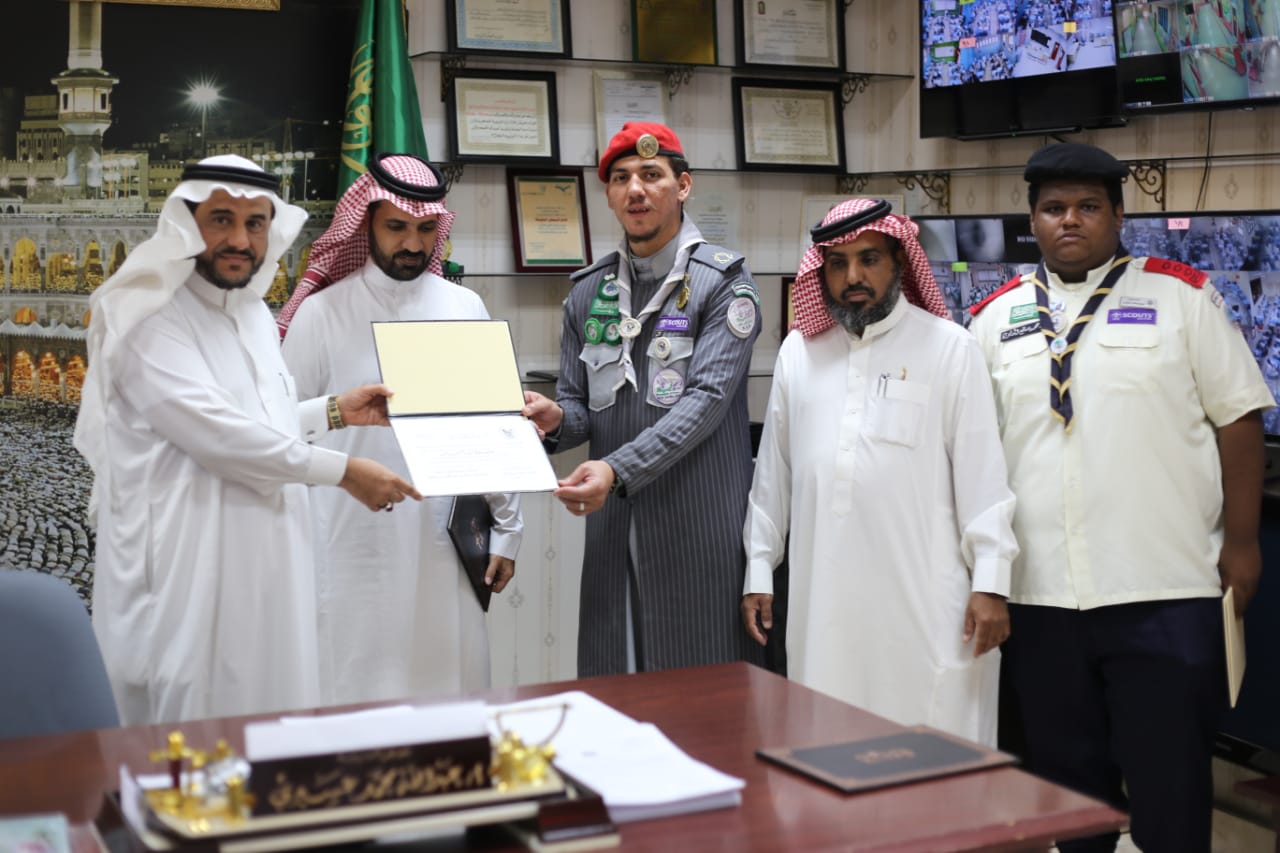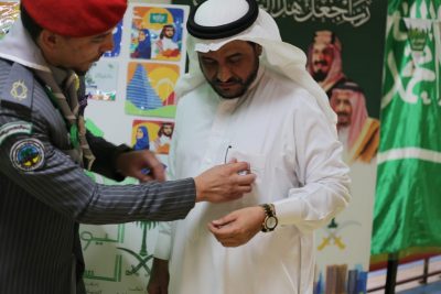 وكان من خلال التكريم احتفالا بمناسبه اليوم الوطني السعودي من قبل كشافة الريادة وكشافة السيوطي