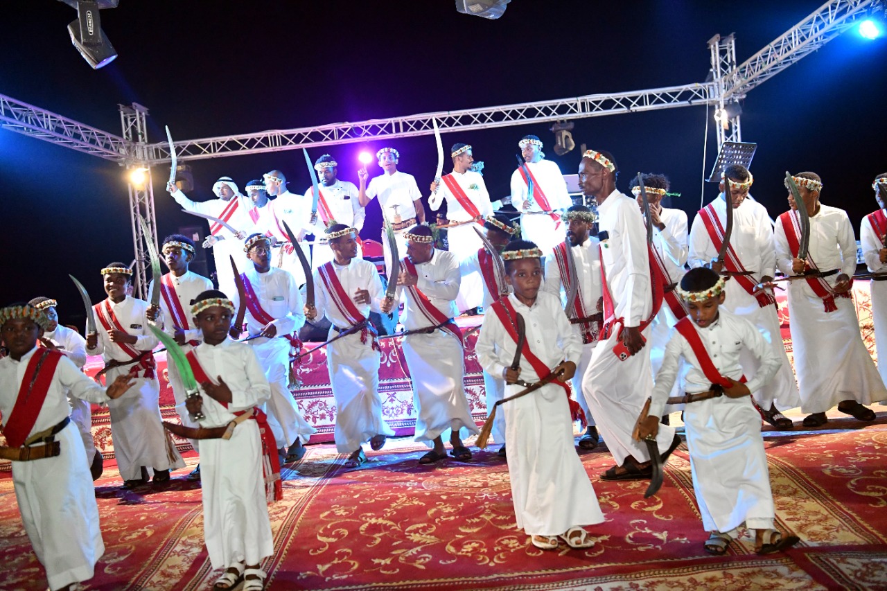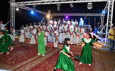 وأقيم حفل فني متنوع بين شعري وغنائي يحاكي مسيرة الوطن خلال 92 عام ، حيث أفتتح الحفل الشاعر الجيزاني ذو الطابع الخاص محمد عطيف ( النابوش ) لتتوالى الفقرات الاحتفال بأوبريت وطني من اداء الفنان عيسى القربي والفنانه إلهام دحيدح.