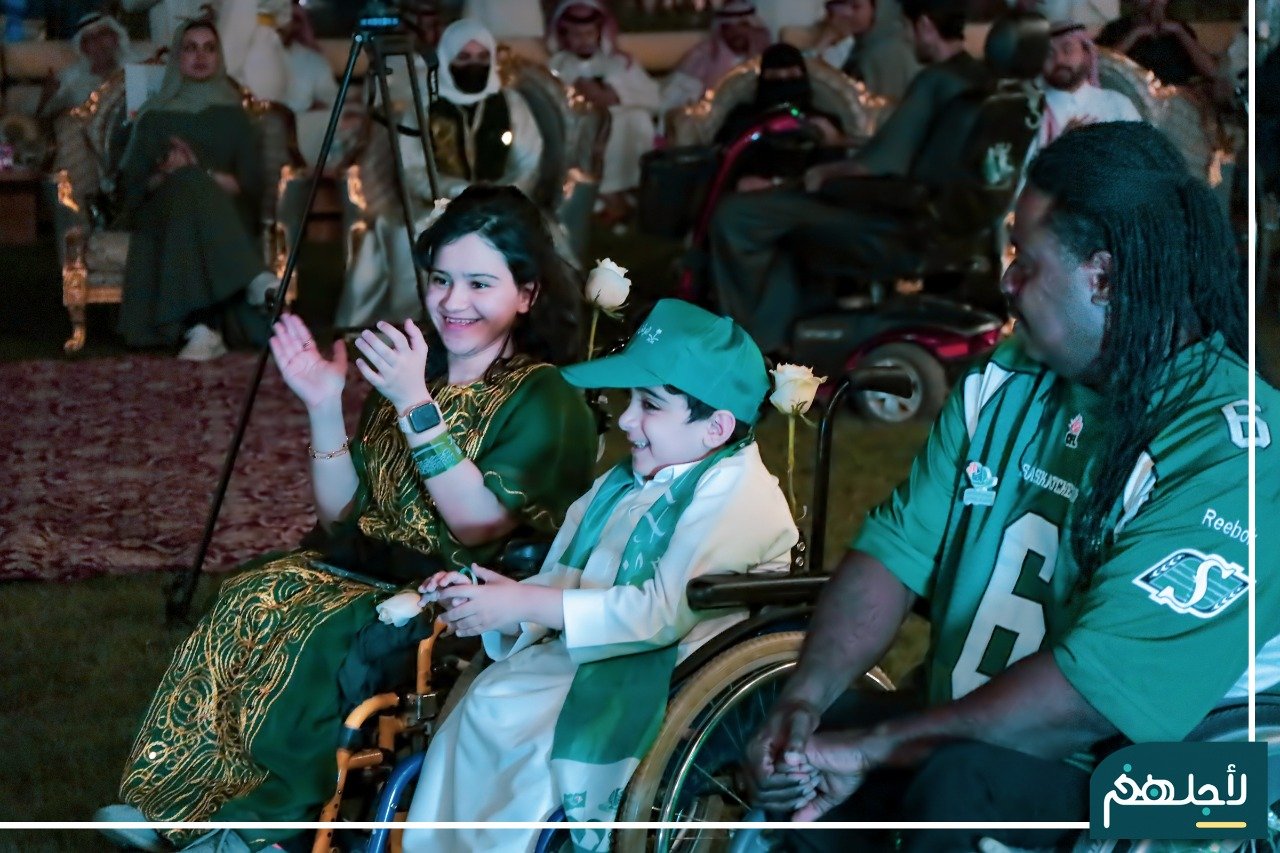 ضمن احتفالات المملكة بيوم الوطن تحت شعار “هي لنا دار”، وبرعاية رئيس مجلس إدارة جمعية لأجلهم لخدمة الأشخاص ذوي الإعاقة الأميرة نوف بنت عبد الرحمن بن ناصر آل سعود وبحضور الرئيس التنفيذي للجمعية الأمير فيصل بن عبد الرحمن بن ناصر آل سعود ، وبتشريف سعادة الشيخ علي بن عبد المحسن الفليج رئيس مجلس إدارة شركة أسكوب القابضة ، وبمشاركة بعض الشخصيات الاجتماعية والإعلامية والفنية ، احتفلت جمعية لأجلهم باليوم الوطني الـ92، وذلك في مزرعة الشيخ علي الفليج – بنمار ، وبدأ الحفل بالسلام الملكي والأناشيد الوطنية، كما تم توزيع الأعلام والشعارات الوطنية على الحضور، واشتمل الحفل على أركان ترفيهية، وفقرات للأطفال تعبر عن حبهم وولائهم للوطن الغالي، وترسيخ المبادئ والقيم الوطنية لديهم، وتعريفهم بتاريخ المملكة والبطولات التي خاضها مؤسس هذه البلاد الملك عبدالعزيز لتوحيد أرجاء الوطن، وسطر مستفيدي لأجلهم أجمل المهارات والهوايات من القصائد الوطنية والمشاركة في المسابقات التنافسية، وإلقاء الأبيات الشعرية المعبرة عن حب هذا الوطن المعطاء، وبمشاركة مجموعة من المشاركين الذين نثروا القصائد والأبيات الشعرية احتفالًا بهذه المناسبة العظيمة .