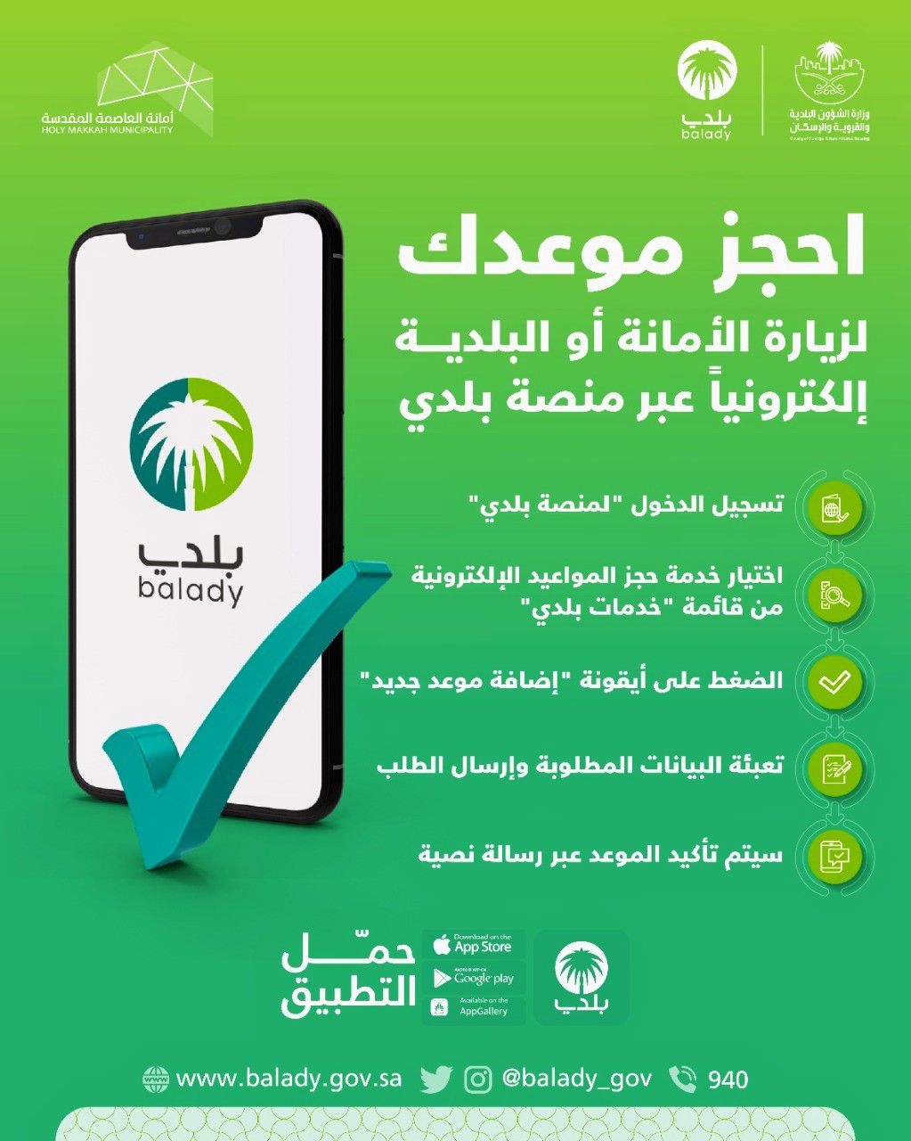 يذكر بأن أمانة العاصمة المقدسة أعلنت عن إمكانية إنهاء معاملات العميل مقدم الطلب عبر منصة المدينة الرقمية “بلدي” خدمة حجز موعد إلكتروني، وهي خدمة تمكن العملاء من حجز موعد لزيارة الأمانة أو البلديات الفرعية التابعة لها لإنجاز معاملة العميل والحصول على الخدمات البلدية، وتأتي هذه الخدمة ضمن سلسلة من الخدمات التي تقدمها الأمانة بهدف تحقيق إستراتيجية التحول الرقمي في القطاع البلدي من خلال أتمتة الإجراءات لرفع كفاءة العمل، وتسريع سير المعاملات.
