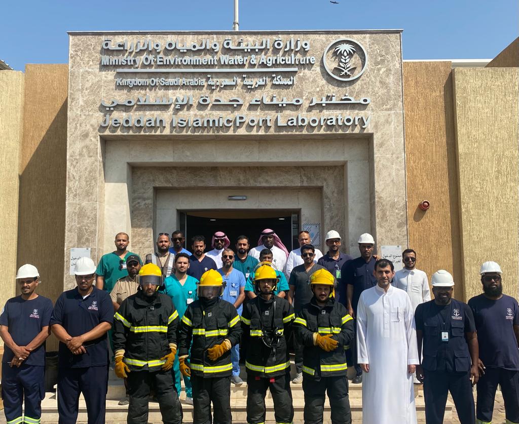 تجربة افتراضية لإخلاء مختبر وزارة البيئة بميناء جدة الإسلامي بالتعاون مع وحدة الأمن الصناعي والانقاذ والدفاع المدني