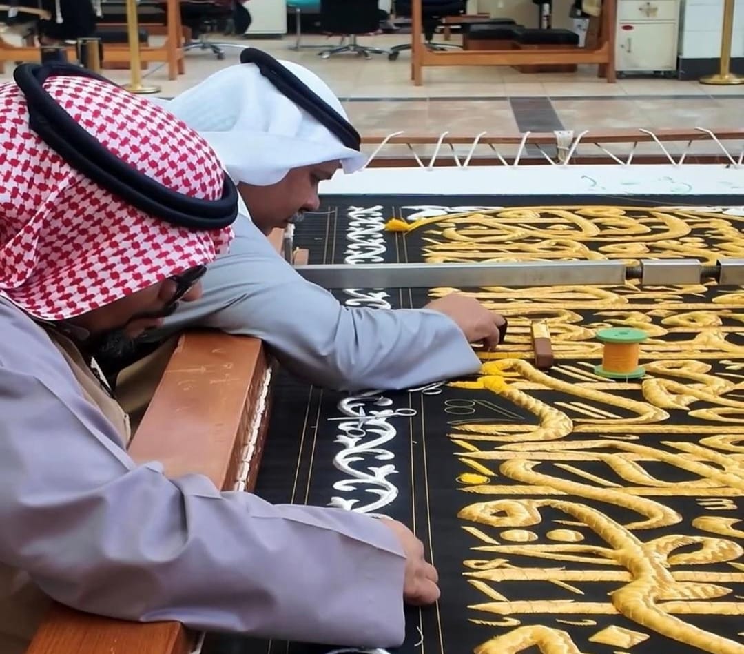 بأيادٍ سعودية احترفت ونسجت الجمال على كسوة الكعبة المشرفة بخيوط الحرير والفضة والذهب، يعمل عدد من الشباب السعودي المفعم بالحيوية على صناعة كسوة الكعبة المشرفة عبر سبع مراحل.