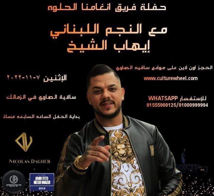 7 نوفمبر.. موعد حفل اللبناني «ايهاب شيخ» بساقية الصاوي