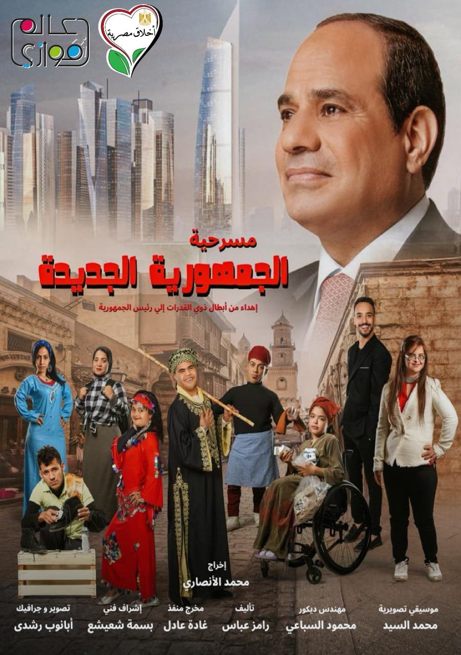 بدات بروفات العمل المسرحي الاول لمؤسسة اخلاق مصرية وعالمها الموازي الذي يعمل علي دمج ذوي القدرات الخاصة في الفنون المعاصرة، وهو العمل المسرحي الاول لذوي الهمم الذي يوثق لانجازات السيد الرئيس عبد الفتاح السيسي، عرض وطني يحمل عنوان “الجمهورية الجديدة ويشارك فيه اكثر من 60 ممثل غالبيتهم من ذوي الهمم ومن تأليف الكاتب الاصم الناطق رامز عباس وإخراج محمد الانصاري