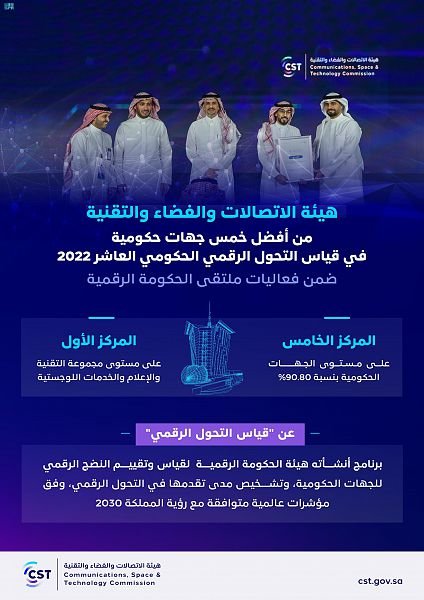 هيئة الاتصالات والفضاء والتقنية ضمن أفضل خمس جهات حكومية في قياس التحول الرقمي الحكومي العاشر 2022
