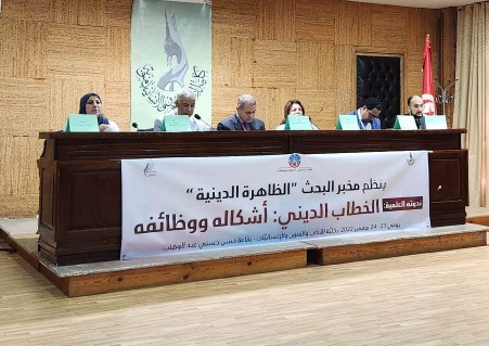 نظم مخبر بحث (( الظاهرة الدينية)) صباح يومنا هذا الأربعاء 23نوفمبر2022 في كلية الآداب والفنون والإنسانيات بجامعة منوبة ندوته العلمية الموسومة : “الخطاب الديني أشكاله ووظائفه”، حيث افتتحت الندوة بجلسة تحدث فيها الأستاذ منصف التائب عميد كلية الآداب والفنون والإنسانيات، وبكلمة للأستاذ محمد بن الطيب رئيس مخبر البحث.