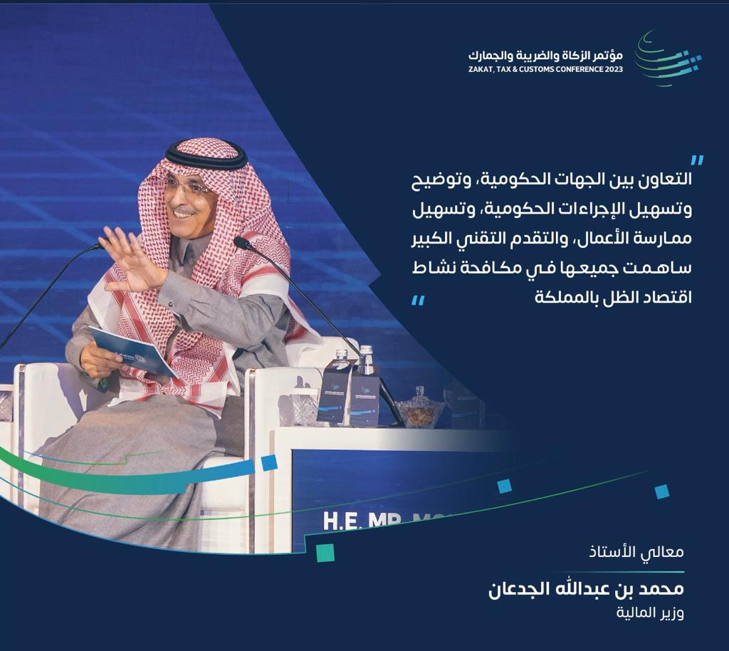 أكد وزير المالية رئيس مجلس إدارة هيئة الزكاة والضريبة والجمارك، في السعودية محمد بن عبدالله الجدعان، في جلسة حوارية بعنوان “معالجة اقتصاد الظل باستخدام الحلول الرقمية” ضمن أعمال مؤتمر “الزكاة والضريبة والجمارك”، المنعقد في مدينة الرياض