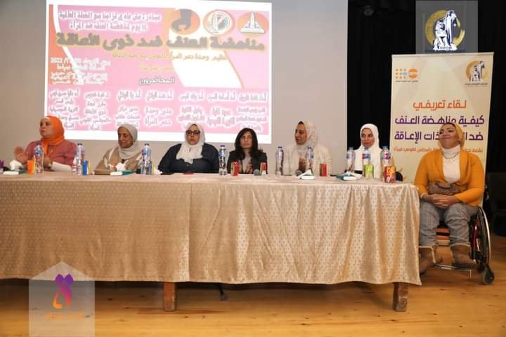 إستمرار التنفيذ في إطار حملة ال ١٦ يوم من الانشطة للقضاء على العنف ضد المرأة التى يطلقها المجلس القومى للمرأة تحت شعار “كونى” ، عقدت لجنة المرأة ذات الإعاقة بالمجلس لقاءاً تحت عنوان “كيفية مناهضة العنف ضد المرأة ذات الإعاقة” وذلك بالتعاون مع وحدة دعم المرأة و مركز خدمات الطلاب ذوي الاعاقة بجامعة عين شمس، وقد شهد اللقاء حضور مها هلالي مقرر مناوب لجنة المرأة ذات الإعاقة بالمجلس ومستشار وزيرة التضامن لشىون الإعاقة و التأهيل ، والأستاذة داليا عاطف عضوة اللجنة ، و الأستاذة الدكتورة غادة فاروق نائب رئيس الجامعة لشئون خدمة المجتمع ، والدكتور أسامة السيد عميد كلية التربية النوعية، و الاستاذ الدكتور رنا الهلالي مدير مركز خدمات طلاب ذوي الاعاقة و الأستاذة الدكتورة هند الهلالي مدير وحدة دعم المرأة بالجامعة ، وعددا من عضوات واعضاء اللجنة .
