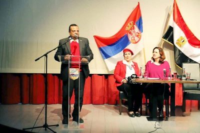 كرم السيد ” نيبويشا ميلياناك “، رئيس بلدية سيتشانى ببلجراد دولة مصر بعد رفع علمها في دار الثقافة في احتفالية توقيع كتاب ( سفير الفن ) للفنان والناقد أ.د. عادل عبد الرحمن وكيل التشكيليين ورئيس قطاع الفنون التشكيلية السابق بوزراة الثقافة وعضو المجلس الأعلى للثقافة سابقا ،في حضور وفد رفيع المستوى من منسوبى السفارة المصرية ببلجراد، ترأسه ” السفير إبراهيم حمزة ” نائب رئيس البعثة المصرية، ازدانت مدينة بلجراد الصربية بالأعلام المصرية التي رفعت إلى جانب الأعلام الصربية في أكبر مسارحها بدار الثقافة في بلدية ” سيتشانى “ Sečanj.