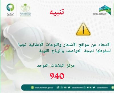 * الابتعاد عن مواقع الأشجار واللوحات الإعلانية تجنبا لسقوطها نتيجة العواصف والرياح القوية