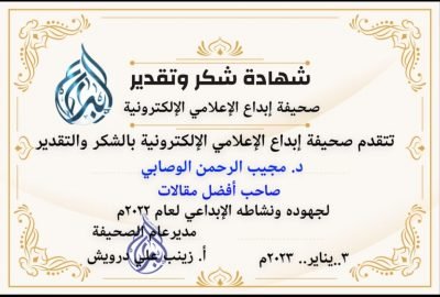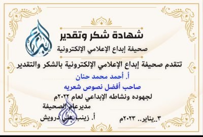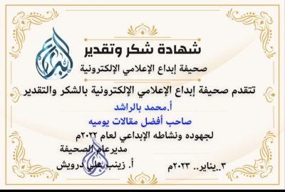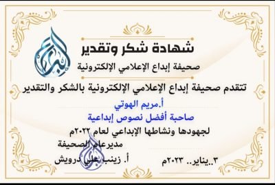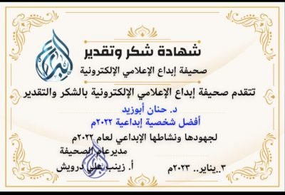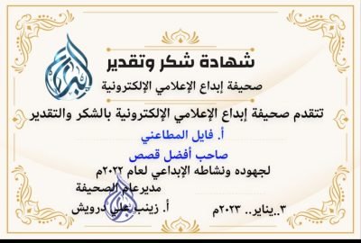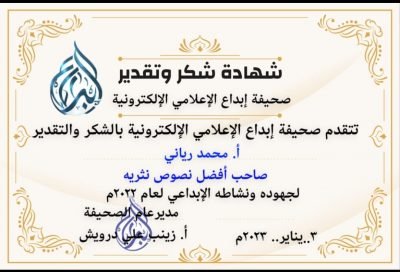 إدارة صحيفة إبداع الإعلامي الإلكترونية تكرم الإبداعات الأدبية لعام ٢٠٢٢م