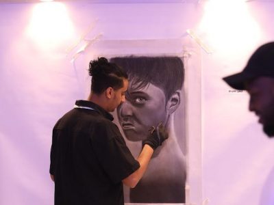 اختتم نادي فنون جازان مســـــاء أمس السبت فعالياته للمعرض الذي دشن الخميس المنصرم بالمركز الحضاري بمحافظة صبيا والتي استمرت ثلاثة أيام بحضور نخبة من المهتمين بالفن وعدد من الأدباء والإعلامين والمؤثرين بالمجتمع، وذلك بمشاركة عدد من الفنانين التشكيليين من مختلف محافظات منطقة جازان وخارجها متضمناً عشرات الأعمال الفنية والمنحوتات لفنانين من مختلف أجيال الحركة التشكيلية؛ إذ بلغ عدد الأعمال المقدمة ما يقارب 100 عمل.