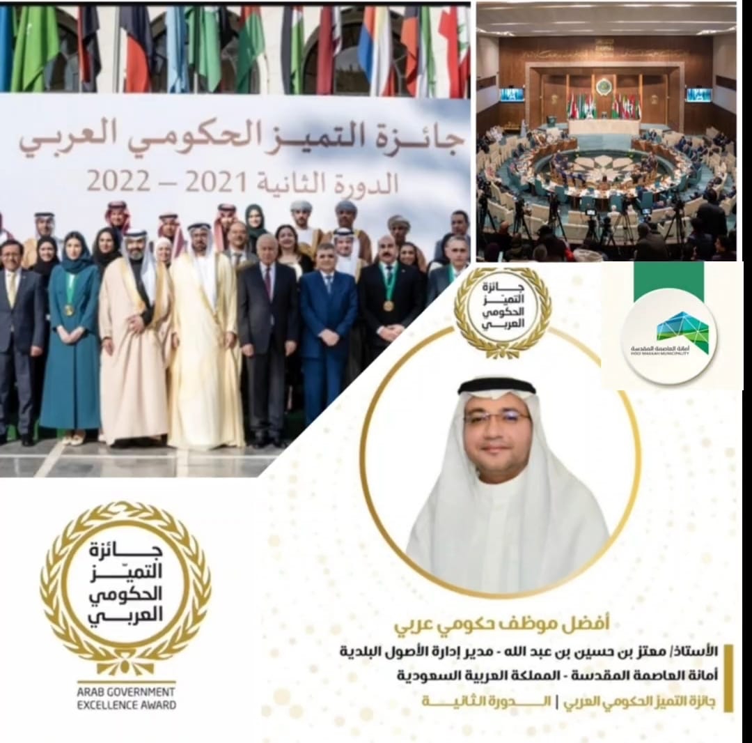 حصل المهندس معتز بن حسين بن عبدالله عبيد مدير إدارة الأصول البلدية بأمانة العاصمة المقدسة على جائزة أفضل موظف حكومي عربي التي تمنحها المنظمة العربية للتنمية الإدارية ، وجاء ذلك خلال حفل توزيع (جائرة التميز الحكومي العربي) في دورتها الثانية الذي أقيم مؤخرا في مقر جامعة الدول العربية بالقاهرة ، وبالتعاون بين جامعة الدول العربية والمنظمة العربية للتنمية الإدارية ، والتي شهدت مشاركة واسعة من منسوبي القطاعات الحكومية في العالم العربي.