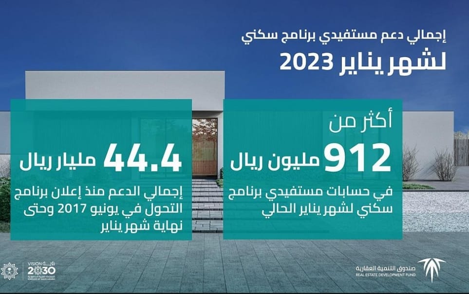 وقال الرئيس التنفيذي للصندوق منصور بن ماضي “إن إجمالي الدعم لشهر يناير بلغ 912 مليون ريال، خُصصت دعماً لأرباح عقود التمويل العقاري المدعُوم”، مشيراً إلى أن إجمالي ما تم إيداعه في حسابات مستفيدي سكني منذ إعلان برنامج التحّول في يونيو 2017 حتى شهر يناير 2023، تجاوز44.4 مليار ريال، لافتًا النظر إلى أن استمرارية الاستفادة من برنامج الدعم السكني ضمن قنوات إلكترونية؛ تختصر الجهد والوقت من بداية التقديم وتملك المسكن الملائم حتى إيداع الدعم الشهري في موعده المحدد شهرياً.