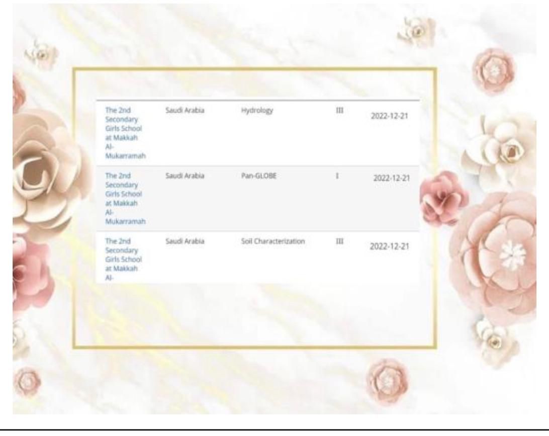 حيث حصدت الثانوية الرابعة والعشرون 10 أوسمة شرف في كلٍ من: الغلاف الجوي المتقدم، الغلاف الجو، المناخ، الأرض كنظام، الهيدرولوجيا (الغلاف المائي)، الغطاء الأرضي، عموم جلوب، الفينولوجيا، خصائص التربة، رطوبة ودرجة حرارة التربة، هذا وفازت (الثانوية الثانية ب 3 أوسمة شرف