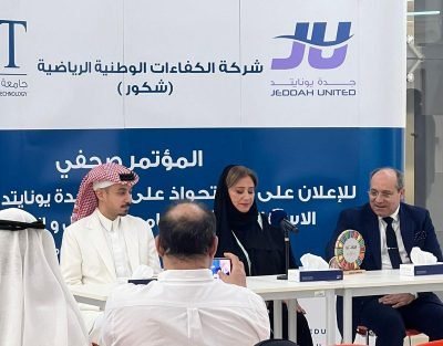حيث تم إبرام أول تحالف رياضي وتعليمي واقتصادي،و الاعلان عن تأسيس شركة الكفاءات الوطنية الرياضية “شكور” التي تستحوذ على جدة يونايتد من خلال شراكة استراتيجية مع جامعة الأعمال والتكنولوجيا، خلال مؤتمر صحفي عقد امس بمقر الجامعة بحضور الرئيس التنفيذي وعضو مجلس الأمناء سعادة الدكتور مهند بن عبدالله دحلان وعميد شؤون الطلاب والمشرف على العلاقات العامه والإعلام الدكتور لؤي الطيار. والأستاذة لينا خالد المعينا و حضور إعلامي ورياضي كبير، وبوجود عدد من الشخصيات الاكاديمية والاقتصادية.
