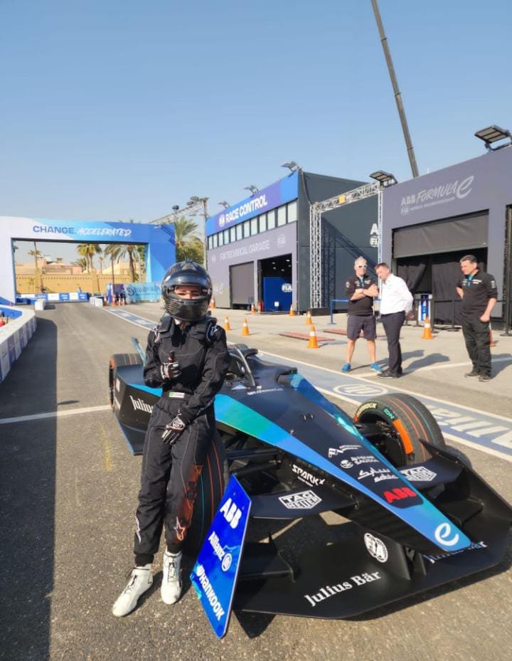 والتي تعد أول سيارةِ سباق في العالم يتم تصميمها وتطويرها خصيصًا لسباقات الشوارع، حيثُ كانت تجربتها الأولى على حلبة الدرعية، والتي يبلغُ طولها 2.49 كلم، بإجمالي 21 منعطفاً. ريم العبود: فخورة بتجربة القيادة الأولى لسيارات فورمولا إي.