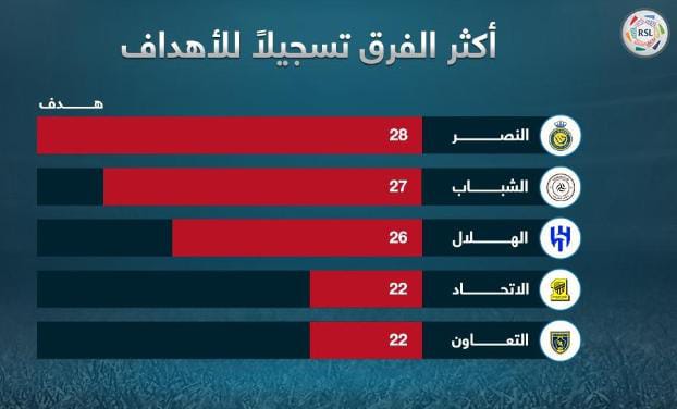 النصر أكثر الفرق تسجيلاً للأهداف في دوري روشن