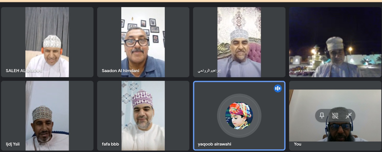 عبر الإتصال المرئي عقدت لجنة العلاقات العامة والفعاليات ” للفعاليات” بجمعية الصحفيين العمانية إجتماع برئاسة صالح بن فايز الرواحي نائب رئيس اللجنة بحضور الأعضاء في بداية اللقاء شكر الرواحي الحضور على تلبية الدعوة