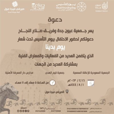 وبهذه المناسبة تقيم جمعية عيون جدة احتفالية بمناسبة “يوم التأسيس” تتضمن العديد من الأنشطة والفعاليات المصاحبة