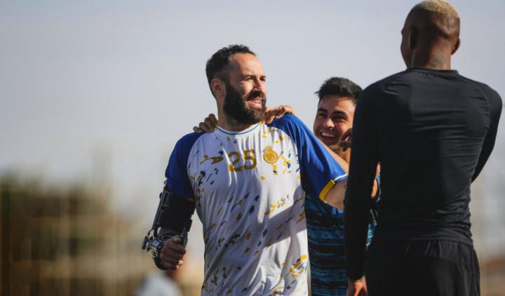 الكولومبي دافيد أوسبينا حارس فريق النصر الأول لكرة القدم المبعد أزال الجهاز الذي يسهم في تثبيت مرفقه، بعد إجراء عملية تثبيت المرفق لدى الجراح الإسباني مانويل لييس في مدريد، العاصمة الإسبانية 17 يناير الماضي.
