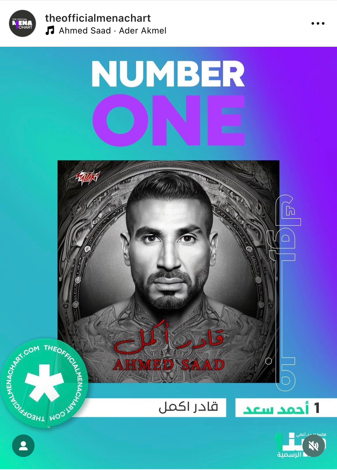 ولا زالت خطوات النجاح مستمرة حيث حقق النجم أحمد سعد ولأول مرة كأول فنان عربى بأغنيته الجديدة “قادر أكمل”، التى تصدر بها المركز الأول، فى قائمة أفضل الأغنيات إستماعا فى الشرق الأوسط، على جميع المنصات الرقمية، من المنظمة العالمية IFPI وهى منظمة الإتحاد الدولى لصناعة التسجيلات الصوتية وهى المنظمة التى تمثل صناعة الموسيقى المسجلة فى جميع أنحاء العالم.