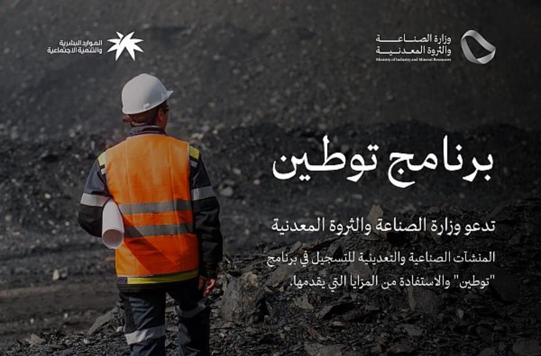 دعت وزارة الصناعة والثروة المعدنية المنشآت الصناعية والتعدينية الراغبة في الاستفادة من برنامج توطين إلى تسجيل بياناتها لدى الوزارة عبر الرابط التالي: