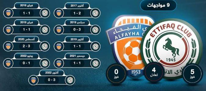 الفيحاء يحتل المركز الحادي عشر في سلم الترتيب برصيد 25 نقطة من 6 انتصارات وتعادل في 7 مواجهات وخسر 9 مباريات، فيما يملك الاتفاق 24 نقطة بالمركز الثاني عشر من 6 انتصارات وتعادل مثلها وخسر 10 مواجهات.