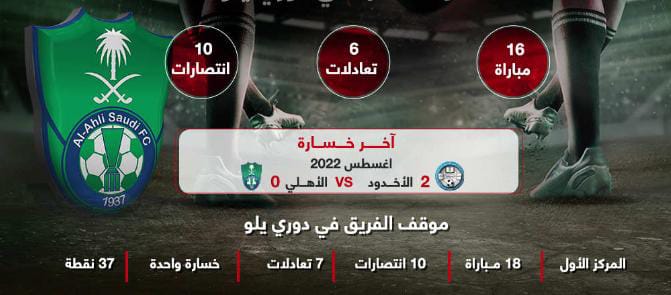 الأهلي لم يتذوق طعم الخسارة في آخر 16 جولة من دوري يلو، حيث افتتح مشواره في الدوري بالتعادل الإيجابي بنتيجة 1-1 وخسر الجولة الثانية أمام مستضيفه الأخدود بنتيجة بهدفين للاشيء.