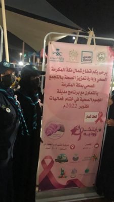 شارك فريق رؤية مكة الكشفي التابع لمركز حي المسفلة قطاع شمال مكة في حفل اختتام فعاليات اكتوبر للتوعية بسرطان الثدي بالتعاون مع عدة قطاعات صحية بمحافظة الجموم .