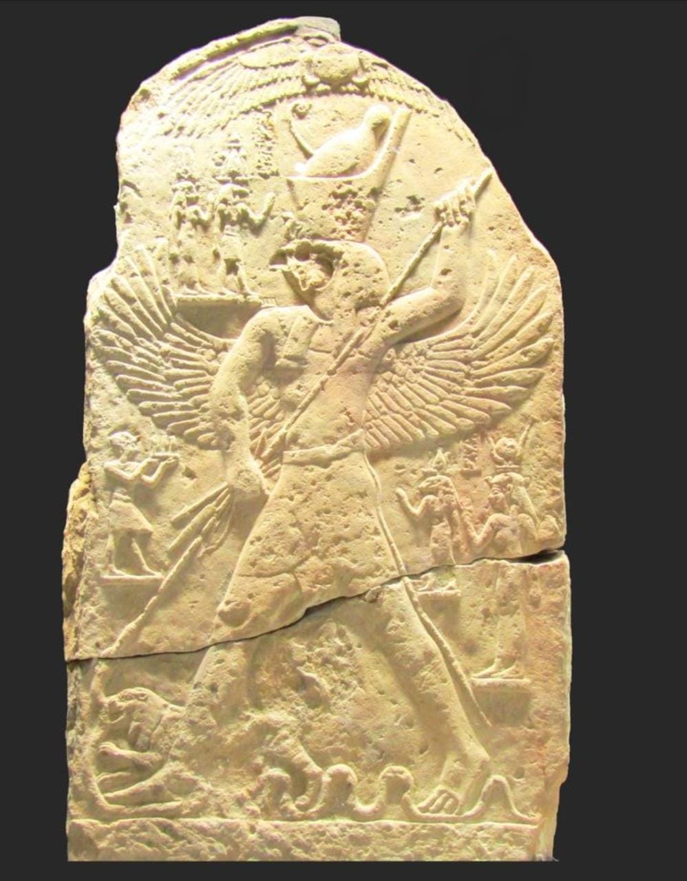 وأضاف أمتا اللوحة الثانية لوحة من الحجر الرملي عليها نقش بالبارز يمثل المعبود حورس برأس صقر يرتدي التاج المزدوج، يقف فوق المعبود ست في هيئة الثعبان، ويطعنه بالحربة، واللوحة تمثل انتصار حورس على ست في نهاية أسطورة المصرية، وهو تجسد للانتصار الخير والعدل على الشر .