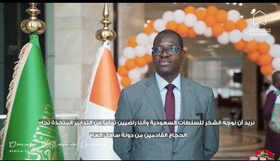 وقد قدم شكره وأمتنانه سفير دوله دولة كوت ديفوار في المملكة العربية السعودية ( كوليبالي دريسا ) يعبر عن شكره وامتنانه لاستقبال الحجيج المُيسر .