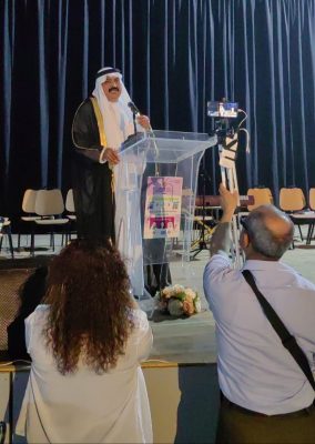 ثم تلى ذلك كلمة الدكتور علي الدرورة اشاد فيها بجهود الوالي واثنى عليه و على وقوفه الى جانب الأدب والادباء من مواطنين و ضيوف.