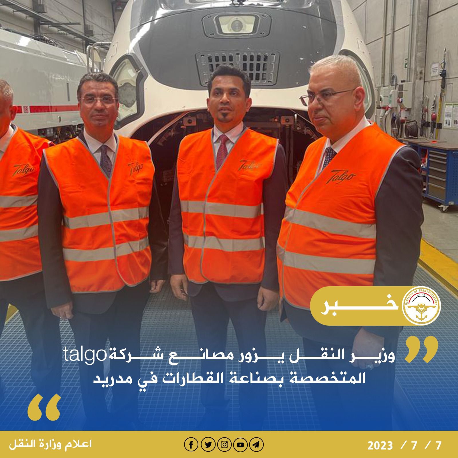 أجرى معالي وزير النقل الأستاذ رزاق محيبس السعداوي جولة استطلاعية لمصانع شركة talgo الاسبانية المتخصصة بصناعة القطارات، في العاصمة الاسبانية مدريد.
