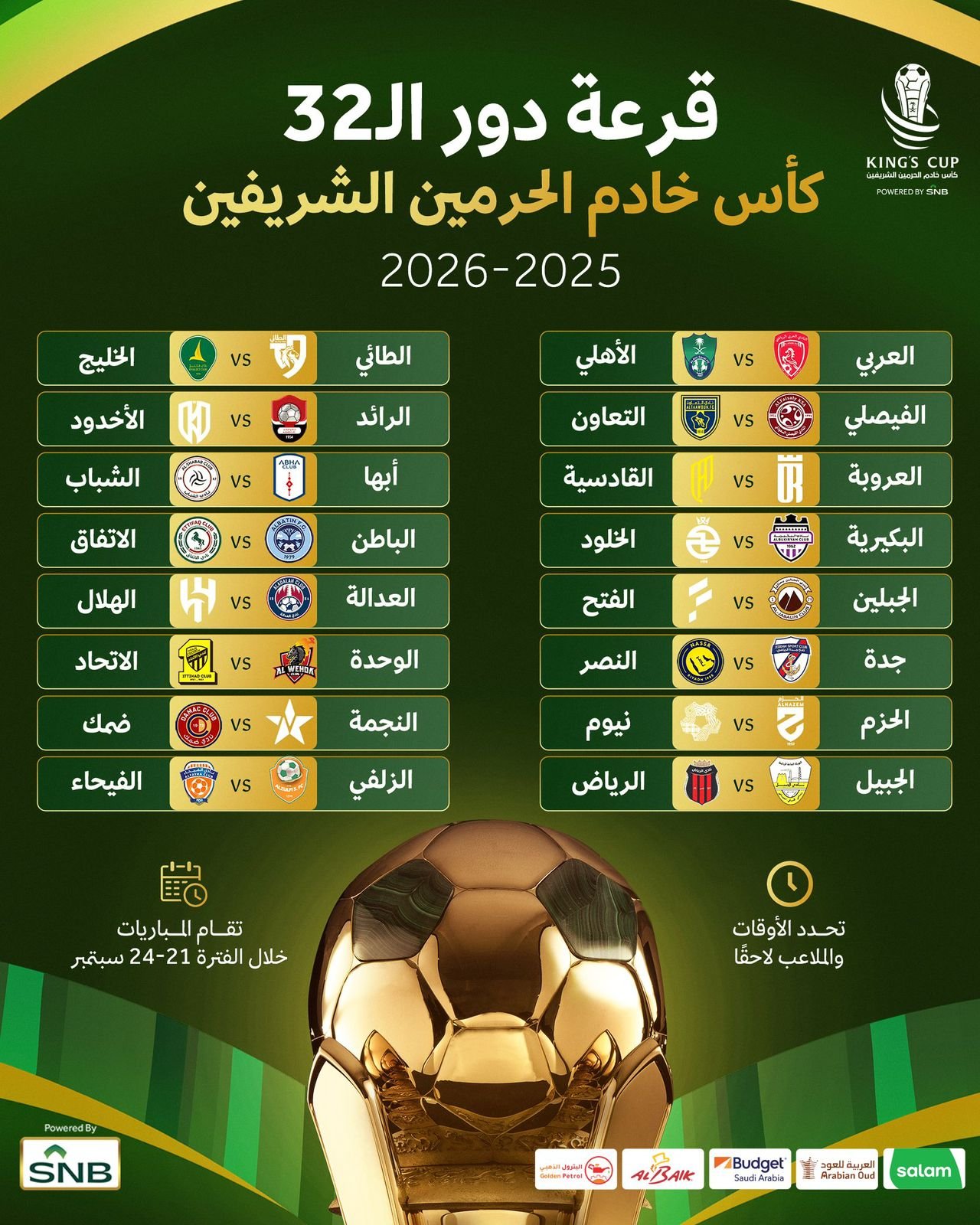 دور 32 في كأس الملك لموسم 2025-2026: