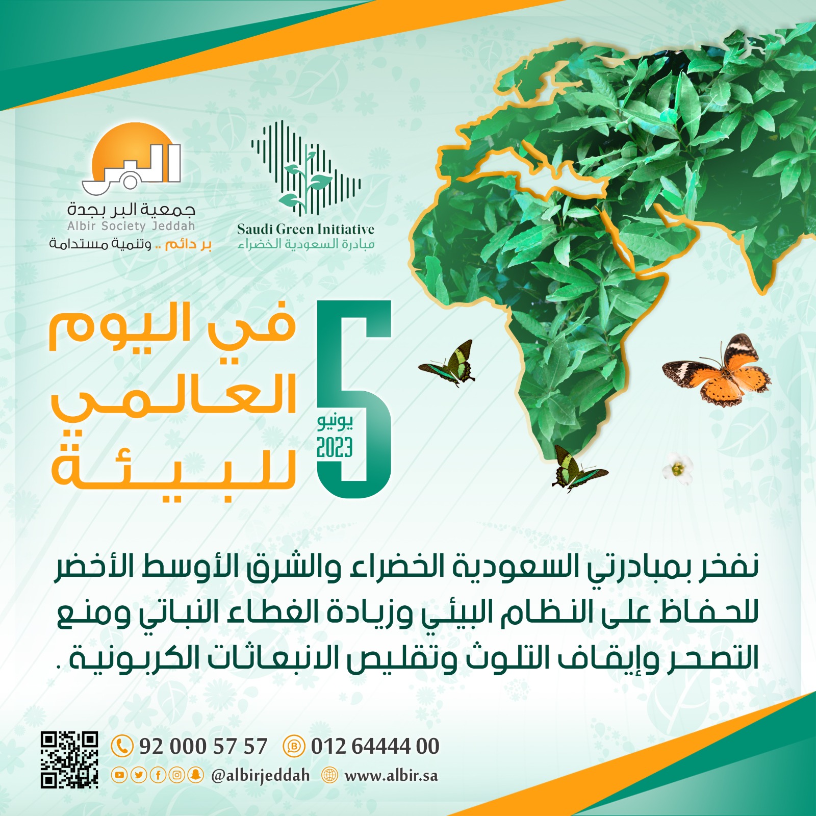 نظمت جمعية البر بجدة فعالية توعوية بمناسبة اليوم العالمي للبيئة الذي يصادف الخامس من يونيو كل عام، بمشاركة مديرية الشؤون الصحية بمحافظة جدة، ومجمع الملك عبد الله الطبي، وشركة النهدي، وجمعية البيئة،